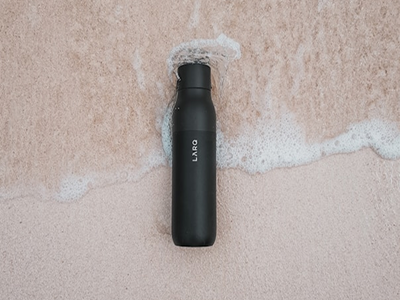 Stay refreshed with this sleek black bottle, featuring wave-inspired details and thermal insulation to keep your drinks cool all day long.